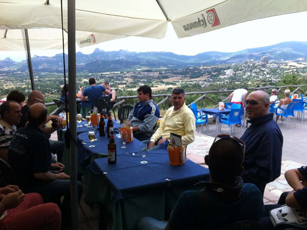 La sete incalza e il gruppo va per la prima birra di giornata al bar belvedere Valle della Luna ad Aggius