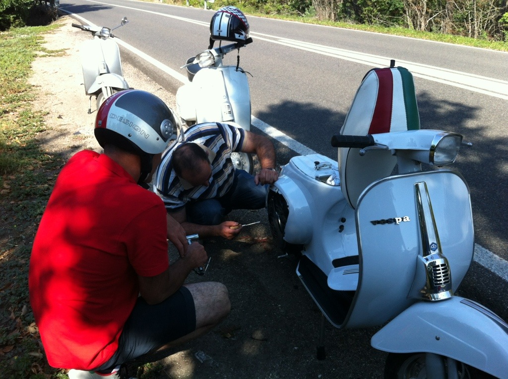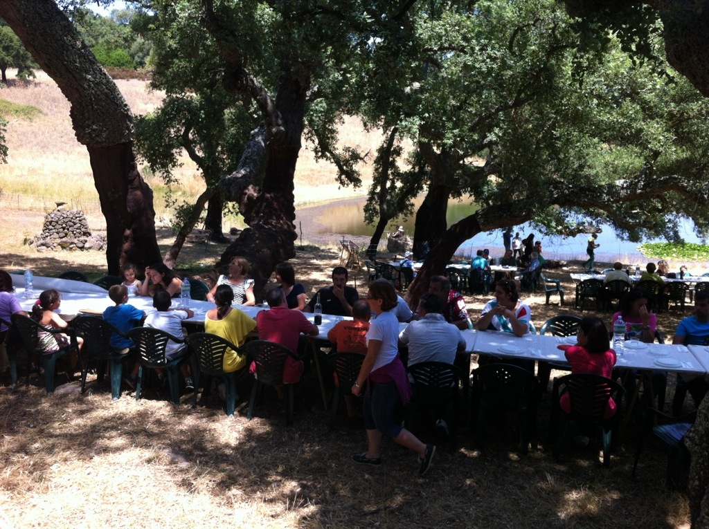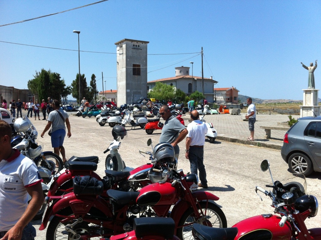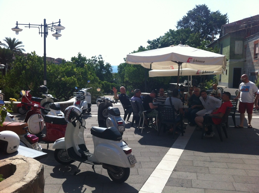 Ia carovana riparte verso la Funtanazza dove ci aspetta un lauto pranzo ma nel tragitto ci dobbiamo fermare di nuovo ancora problemi alla moto di Ciucciu ( Saranno 4 in tutto il giorno) ripartiamo ma abbiamo perso il gruppo sbagliamo strada ma un ragazzo dell’ organizzazione ci recupera e ci fa strada arrivati sul posto ci salutiamo gli amici del Vespa club di Sassari e ci sistemiamo per il pranzo