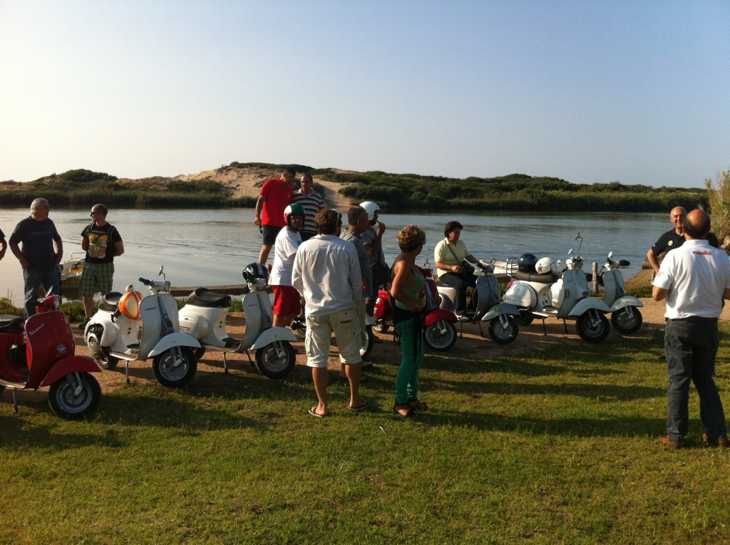 Mito Pi non resiste alla tentazione e anche contro il parere medico ci raggiunge con un nuovo amico vespista a Sedini e la piccola compagnia riparte verso Valledoria… Foto di gruppo alla foce