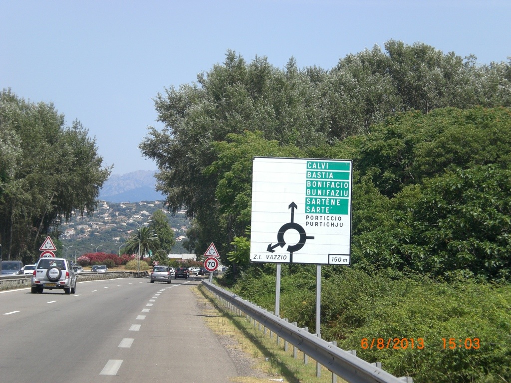 Pieno di benzina e alle 15:03 imbocco della strada che porta da Ajaccio a Bonifacio.
